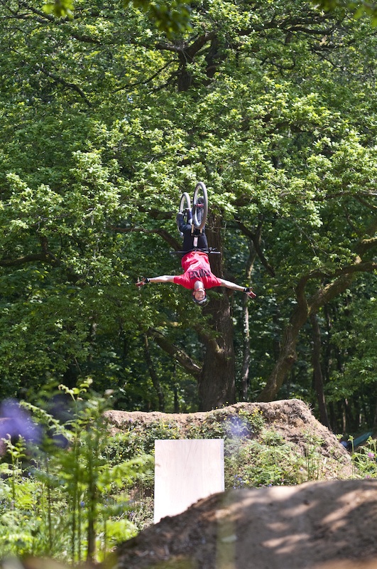 Adam Williams (Rose Bikes) flipping out with no hands.